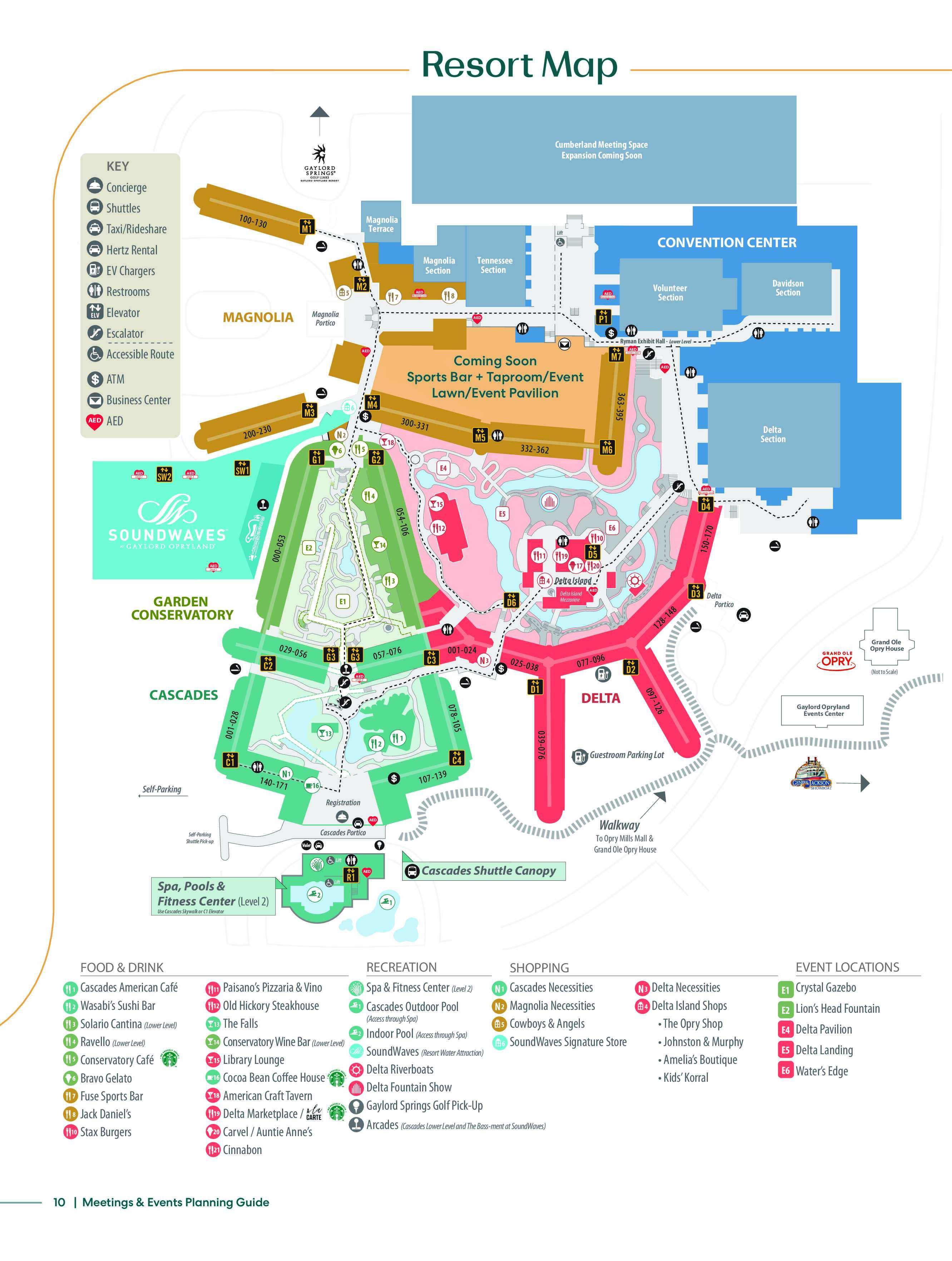 The Gaylord Opryland is a very large venue and can be overwhelming to navigate. Please download the Gaylord Hotels app for wayfinding assistance and step-by-step navigation.